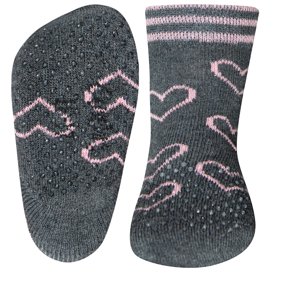 EWERS ponožky s protiskluzem Srdce - vel. 18-19 - hnědorůžové