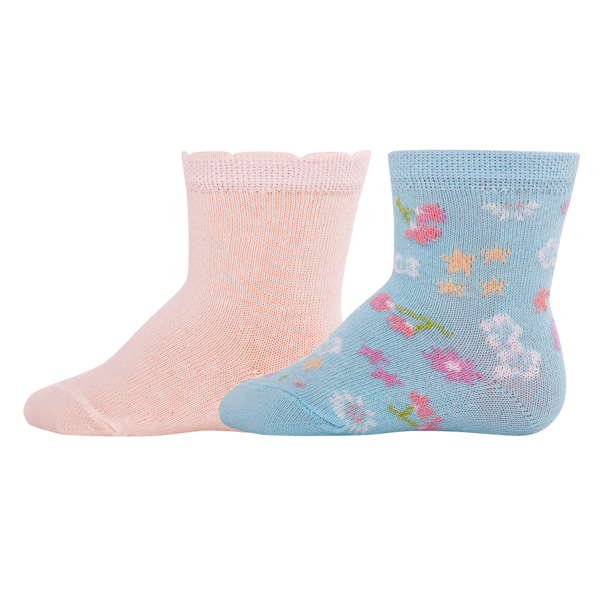 EWERS dětské ponožky Kytičky - modrorůžové, vel. 17-18 - 2 pack