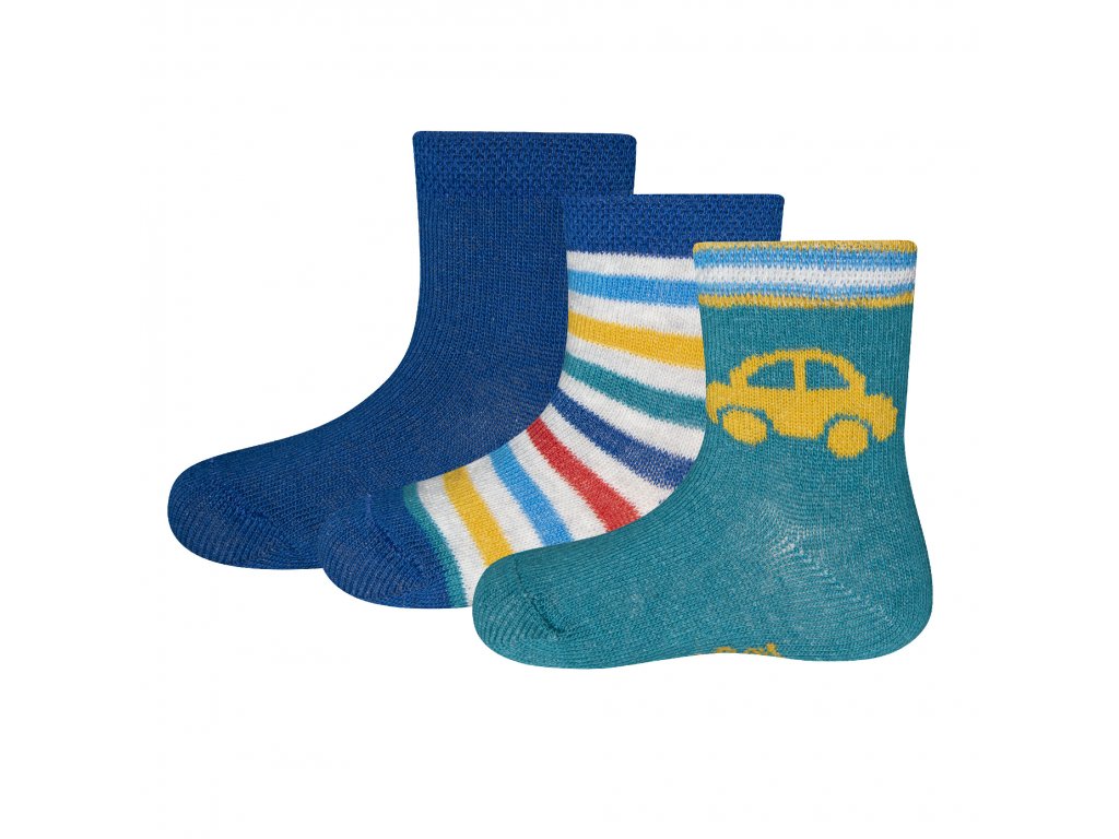 3pack = 1x jednobarevné modré , 1x modrozelemé s autem a 1x barevně proužkované