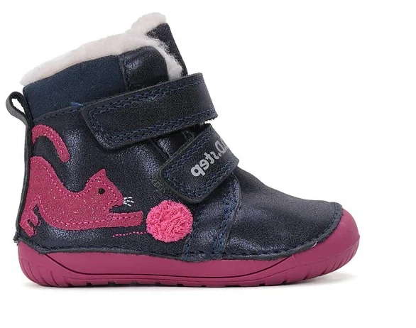 Zimní kožené barefoot dětské boty DD step W070-42110A Royal Blue