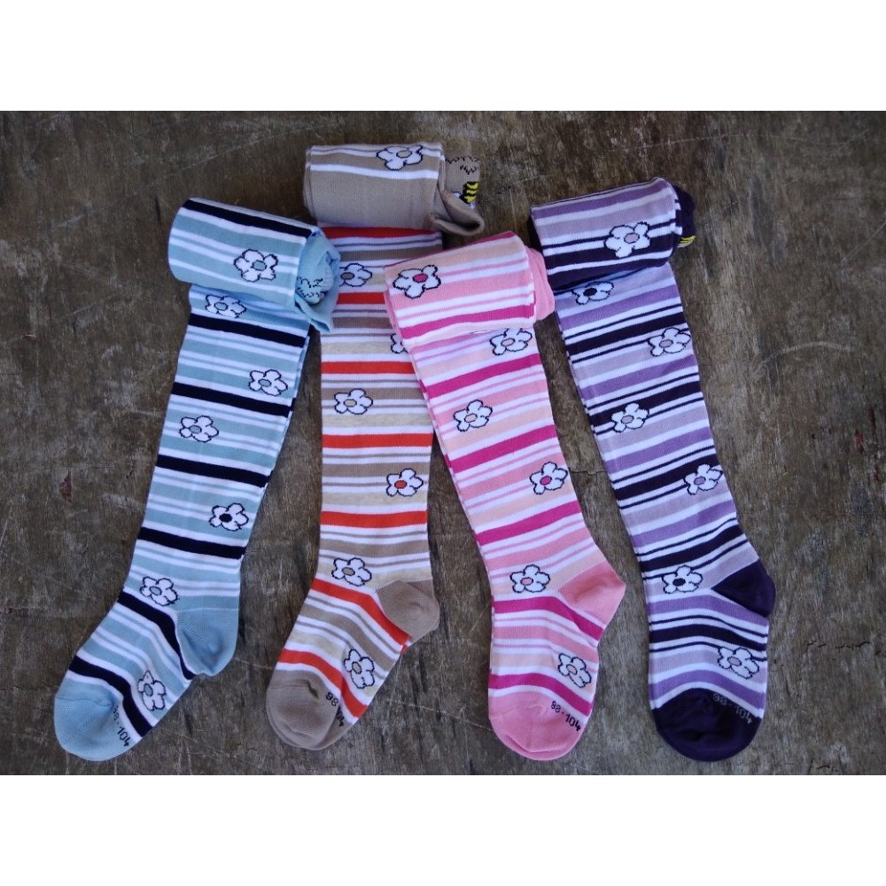 Dětské bavlněné punčochové kalhoty. Punčocháče se příjemně nosí díky vysokému podílu bavlny, elastan zajišťuje, aby dětem dobře padly a dlouho si udržely svůj tvar. Tyto dětské punčocháče mají komfortní pas, který se nezařezává ani nesklouzává. Pro větší pohodlí při nošení je do punčocháčů všitý klín. Plochý šev v oblasti prstů a sedové části.
